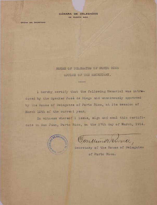 A: That is another misconception. The Chamber of Delegates opposed a citizenship bill in 1914 but only because it did not include universal male suffrage. And, Luis Muñoz Rivera opposed citizenship because he thought it would gain the US metropolis much sympathy thus weakening his party’s position.